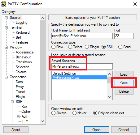 Configurer une enfin connexion intégrant un tunnel SOCKS avec PuTTY depuis votre machine vers ce serveur. En suivant les 3 étapes suivantes :