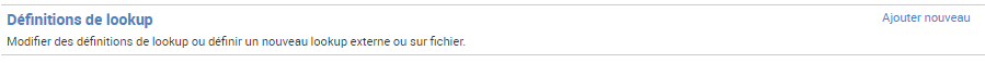 Mais on ne va pas s’arrêter là et on va définir notre lookup directement dans Splunk. Pour cela, revenez dans l’écran de configuration « Lookups » et cliquer sur Définitions de lookup « ajouter un nouveau » :