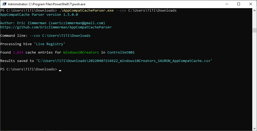 Comme pour le SRUM, ces caches vont permettre d’identifier des programmes qui ont été exécutés sur une machine. Y compris si ces derniers ont été supprimé entre temps. Un des avantages du ShimCache est également qu’il stocke beaucoup plus d’élément que le Prefetch (128 fichiers pour rappel), par exemple jusqu’à 1024 entrées sous un Windows 7.